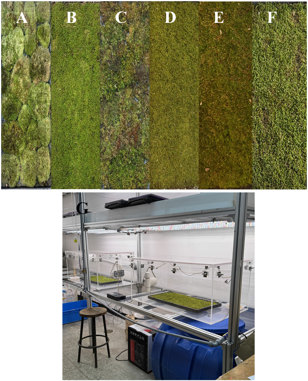 - As modern individuals spend most of their time indoors, maintaining optimal indoor air quality (IAQ) is essential for health and well-being. Moss has been recognized as a promising nature-based solution for IAQ improvement due to its CO2 absorption and pollutant filtration capabilities. This study evaluated the CO2 absorption capacity of six moss species under controlled conditions in a sealed acrylic chamber with two light intensities (50 and 200µmol·m-2·s-1). Results showed that ‘Hypnum plumaeforme’ and ‘Racomitrium yakushimense’ exhibited the highest CO2 absorption capacity (0.193, 0.494L·m-2·h-1) at 50 and 200μmol·m-2·s-1, respectively. Contrary to common belief, moss species demonstrated significantly higher CO2 absorption efficiency under high light intensity, suggesting their adaptability to higher light environments. Additionally, higher relative humidity enhanced CO2 absorption, with the capacity peaking at around 100% RH. Respiration experiments further confirmed that the rate CO2 absorption through photosynthesis was approximately 2.9 times greater than the respiration rate. These findings highlight the potential of moss for IAQ improvement and carbon sequestration, offering insights into optimal species selection and environmental conditions for urban applications.