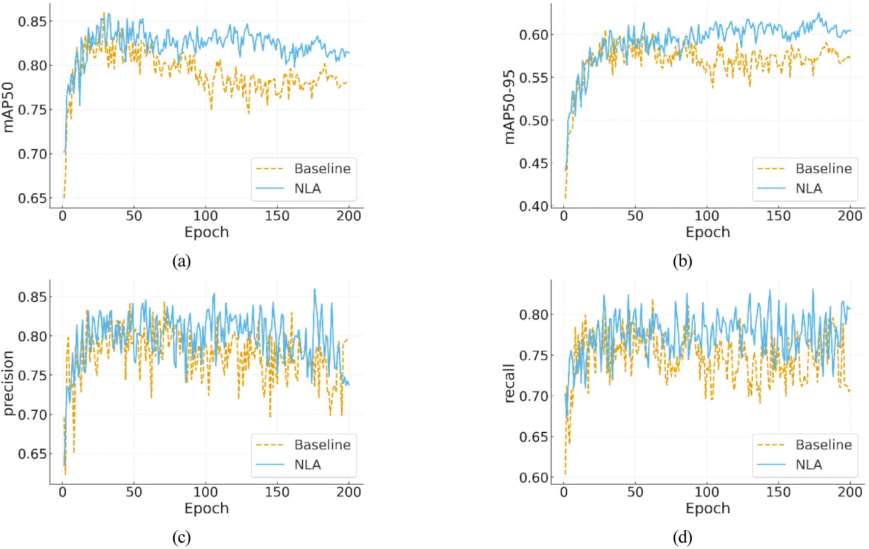 본 연구에서는 작물 이미지 데이터셋에 적합한 데이터 증강 기법으로 자연광 기반 증강을 제안하였다. NLA는 밝기, 색온도, 대비 변화를 반영하여 실제 환경에서 발생 가능한 광조건을 학습 데이터에 적용함으로써, 기존 YOLO 기본 증강 대비 더욱 현실적인 학습 데이터를 생성할 수 있도록 설계되었다. 참외와 딸기 데이터셋을 대상으로 한 실험 결과, NLA는 Baseline 대비 전반적인 성능 향상을 보였다. 또한 Baseline에서 학습 후반부에 나타난 성능 저하나 불안정성이 NLA에서는 완화되어, 제안 기법이 과적합 방지와 학습 안정성 유지에도 효과적임을 입증하였다. PatchSwap은 Mosaic의 한계를 보완하기 위한 보조적 시도로 실험에 포함되었으나, 종합적인 성능 향상에는 뚜렷한 기여를 하지 못하였다. 본 연구 결과는 작물 이미지에서 실제 광조건을 반영한 데이터 증강의 필요성과 유효성을 보여주었으며, 이는 향후 다양한 작물과 촬영 환경으로 확장 가능한 가능성을 제시한다. 앞으로는 NLA의 적용 범위를 확대하고, 다른 딥러닝 모델 및 추가적인 농업 데이터셋에 대한 성능 검증을 통해 본 기법의 범용성과 실효성을 더욱 강화할 필요가 있다.